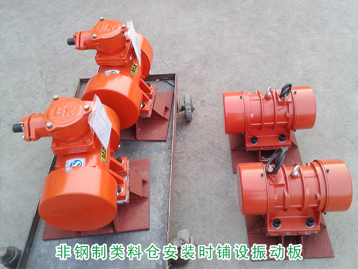 在非鋼制類料倉安裝倉壁振動器時需要在倉內(nèi)鋪設(shè)振動板然后將振動器焊接在振動板上一起緊固在料倉上,因為非鋼材類料倉本身隔絕振動力所以需求鋪設(shè)振動板以方便傳遞振動電機產(chǎn)生的振動力活化物料。