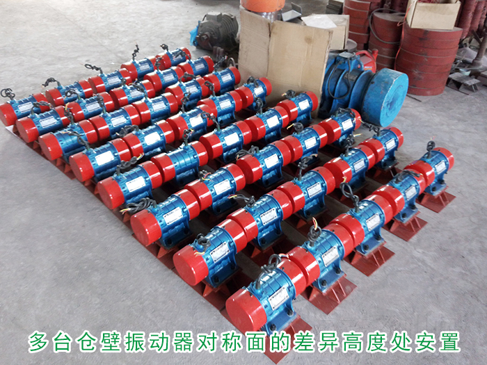 如果為了得到更好的振動效果,在使用多臺倉壁振動器安裝時可將其與料倉內(nèi)活化器直接連接,以達到較高度的清除破拱結(jié)果。在安裝兩臺以上的振動器時,需要在對稱面的差異高度處安置。