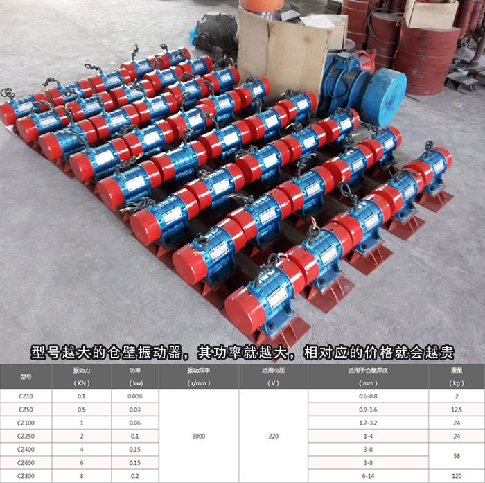 相同類型下,倉(cāng)壁振動(dòng)器價(jià)格還受型號(hào)的影響,因?yàn)椴煌吞?hào)的倉(cāng)壁振動(dòng)器,應(yīng)用的料倉(cāng)也不一樣,價(jià)格也不一樣,一般情況下,型號(hào)越大的倉(cāng)壁振動(dòng)器,其功率就越大,相對(duì)應(yīng)的價(jià)格就會(huì)越貴。
